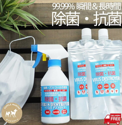 商品詳細 商品名 ウイルスデストロイヤースプレーボトル300ml 1本+詰替え用パウチ300ml 2本 原材料名 ポリヘキサメチレンビグアナイド、パンシル(柿渋エキス) 内容量 スプレーボトル300ml 1本+パウチ300ml 2本 ご使用方法 商品裏面をご確認ください。